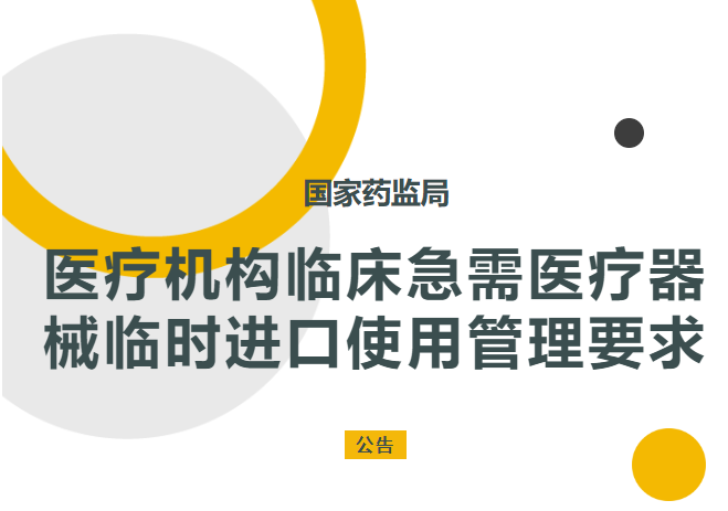 为规范医疗机构临床急需医疗器械临时进口使用管理,进一步满足临床诊疗急需,按照《医疗器械监督管理条例》(国务院令第739号)、《医疗器械注册与备案管理办法》(国家市场监管总局令第47号)和《体外诊断试剂注册与备案管理办法》(国家市场监管总局令第48号)等相关规定,国家药品监督管理局会同国家卫生健康委组织制定了《医疗机构临床急需医疗器械临时进口使用管理要求》,现予发布,自发布之日起施行。