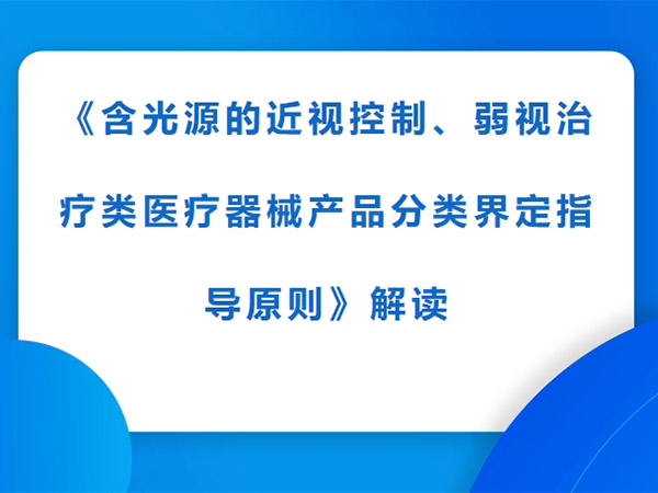 为进一步规范含光源的近视控制、弱视治疗类医疗器械产品的管理属性和类别判定,国家药监局组织制定了《含光源的近视控制、弱视治疗类医疗器械产品分类界定指导原则》(以下简称指导原则)。为有效指导各方准确...