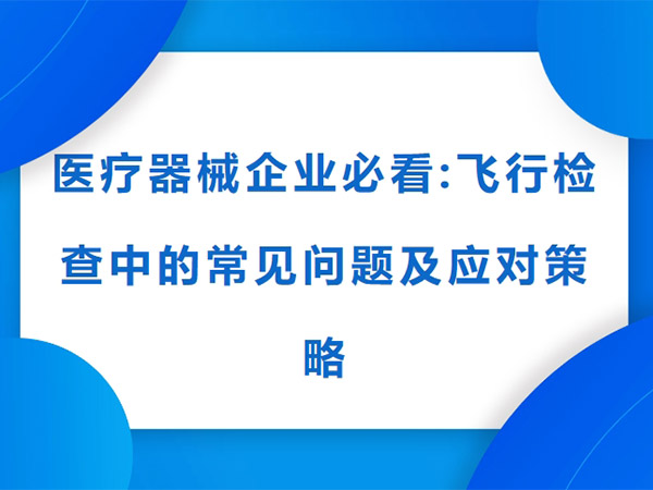 医疗器械GMP飞行检查简称飞检,是跟踪检查的一种形式,指事先不通知被检查部门实施的现场检查。当前越来越多的生产企业接受国家/省药监局的飞行检查,飞检已成为了一种重要的监管手段。在检查中发现了各种...