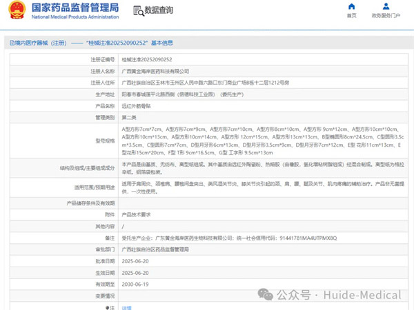 热烈祝贺,由我们汇得医疗CRO辅导合作的客户广西黄金海岸医药科技有限公司自主研发的【远红外筋骨贴】产品成功获批广西壮族自治区药品监督管理局第二类医疗器械产品注册证,意味着该产品可以在国内医美医疗市场开...