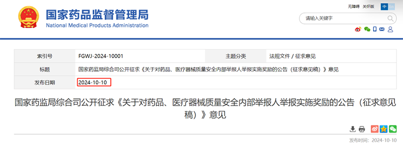 为进一步发挥药品、医疗器械产业链质量安全内部监督作用,及时发现和控制药品、医疗器械安全风险,根据《中华人民共和国药品管理法》《中华人民共和国疫苗管理法》《医疗器械监督管理条例》等法律法规以及《市场监管领域重大违法行为举报奖励暂行办法》(国市监稽规〔2021〕4号,以下简称《办法》)等规范性文件规定,现就药品、医疗器械质量安全内部举报人举报奖励有关事项公告如下。