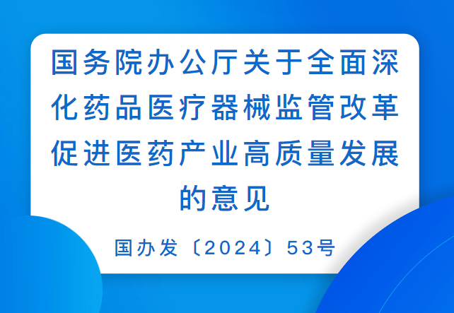 各省、自治区、直辖市人民政府,国务院各部委、各直属机构: 为深入贯彻落实习近平总书记关于药品医疗器械监管和医药产业发展的重要指示批示精神,全面深化药品医疗器械监管改革,促进医药产业高质量发展,经国务院同意,现提出以下意见。 一、总体要求 以习近平新时代中国特色社会主义思想为指导,全面贯彻党的二十大和二十届二中、三中全会精神,坚持科学化、法治化、国际化、现代化的监管发展道路,统筹高质量发展和高水平安全,深化药品医疗器械监管全过程改革,加快构建药品医疗器械领域全国统一大市场,打造具有全球竞争力的创新生态,推动我国从制药大国向制药强国跨越,更好满足人民群众对高质量药品医疗器械的需求。 到2027年,药品医疗器械监管法律法规制度更加完善,监管体系、监管机制、监管方式更好适应医药创新和产业高质量发展需求,创新药和医疗器械审评审批质量效率明显提升,全生命周期监管显著加强,质量安全水平全面提高,建成与医药创新和产业发展相适应的监管体系。到2035年,药品医疗器械质量安全、有效、可及得到充分保障,医药产业具有更强的创新创造力和全球竞争力,基本实现监管现代化。 二、加大对药品医疗器械研发创新的支持力度 (一)完善审评审批机制全力支持重大创新。按照“提前介入、一企一策、全程指导、研审联动”要求,审评审批资源更多向临床急需的重点创新药和医疗器械倾斜,在临床试验、注册申报、核查检验、审评审批等全过程加强沟通交流,提供个性化指导。(国家药监局负责) (二)加大中药研发创新支持力度。完善中医药理论、人用经验和临床试验相结合的中药特色审评证据体系,建立医疗机构规范收集整理人用经验数据的机制。健全符合中药特点的中药监管体系。积极支持名老中医方、医疗机构中药制剂向中药新药转化。鼓励运用符合产品特点的新技术、新工艺、新剂型改进已上市中药品种。(国家药监局牵头,工业和信息化部、国家卫生健康委、国家中医药局按职责分工负责) (三)发挥标准对药品医疗器械创新的引领作用。深入推进国家药品医疗器械标准提高行动计划,积极推进新技术、新方法、新工具的标准研究和转化。完善国家药品标准数据库,发布并及时更新网络版中国药典。优化医疗器械标准体系,研究组建人工智能、医用机器人等前沿医疗器械标准化技术组织。加强中医医疗器械标准制定。(国家药监局牵头,工业和信息化部、国家卫生健康委、市场监管总局、国家中医药局按职责分工负责) (四)完善药品医疗器械知识产权保护相关制度。部分药品获批上市时,对注册申请人提交的自行取得且未披露的试验数据和其他数据,分类别给予一定的数据保护期。对符合条件的罕见病用药品、儿童用药品、首个化学仿制药及独家中药品种给予一定的市场独占期。加快药品医疗器械原创性成果专利布局,提升专利质量和转化运用效益。(国家知识产权局、国家药监局按职责分工负责) (五)积极支持创新药和医疗器械推广使用。加大创新药临床综合评价力度,加强评价结果分析应用。研究试行以药学和临床价值为基础的新上市药品企业自评,优化新上市药品挂网服务。坚持基本医疗保险“保基本”功能定位,完善医保药品目录调整机制,研究规范医保医用耗材目录和医疗服务项目目录,按程序将符合条件的创新药和医疗器械纳入医保支付范围,鼓励医疗机构采购使用。完善多层次医疗保障体系,提高创新药多元支付能力。积极向公众传播准确、全面的创新药和医疗器械信息。(工业和信息化部、国家卫生健康委、市场监管总局、国家医保局、国家药监局按职责分工负责) 三、提高药品医疗器械审评审批质效 (六)加强药品医疗器械注册申报前置指导。缩短临床急需创新药临床试验沟通交流等待时限。开展多渠道多层次沟通,办好“药审云课堂”、“器审云课堂”,发挥审评检查分中心和医疗器械创新服务央地联动机制作用,加强对注册申报规则的宣传解读。(国家药监局负责) (七)加快临床急需药品医疗器械审批上市。对临床急需的细胞与基因治疗药物、境外已上市药品、联合疫苗、放射性药品、珍稀濒危药材替代品的申报品种,以及医用机器人、脑机接口设备、放射性治疗设备、医学影像设备、创新中医诊疗设备等高端医疗装备和高端植介入类医疗器械,予以优先审评审批。(国家卫生健康委、国家药监局按职责分工负责) (八)优化临床试验审评审批机制。省级药品监管部门提出申请,国家药监局同意后,在部分地区开展优化创新药临床试验审评审批试点,将审评审批时限由60个工作日缩短为30个工作日。医疗器械临床试验审评审批时限由60个工作日缩短为30个工作日。优化生物等效性试验备案机制。(国家药监局牵头,试点地区省级人民政府配合) (九)优化药品补充申请审评审批。省级药品监管部门提出申请,国家药监局同意后,在部分地区开展优化药品补充申请审评审批程序改革试点,需要核查检验的补充申请审评时限由200个工作日缩短为60个工作日。优化原料药管理,原料药登记主体可依法变更。(国家药监局牵头,试点地区省级人民政府配合) (十)优化药品医疗器械注册检验。将药品注册检验、生物制品批签发检验和进口药品通关检验每批次用量从全项检验用量的3倍
