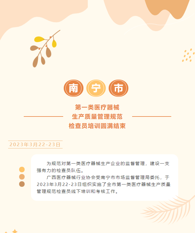 此次培训,是广西医疗器械行业协会配合市场监管机关进一步做好《医疗器械监督管理条例》、《医疗器械生产监督管理办法》及其配套规章宣贯,助力行业规范发展所做的服务工作,对建立 “南宁市第一类医疗器械生产质量管理规范检查员人才库”, 锻造人才支撑合力,推动南宁市医疗器械产业高质量发展,具有十分重要的意义。